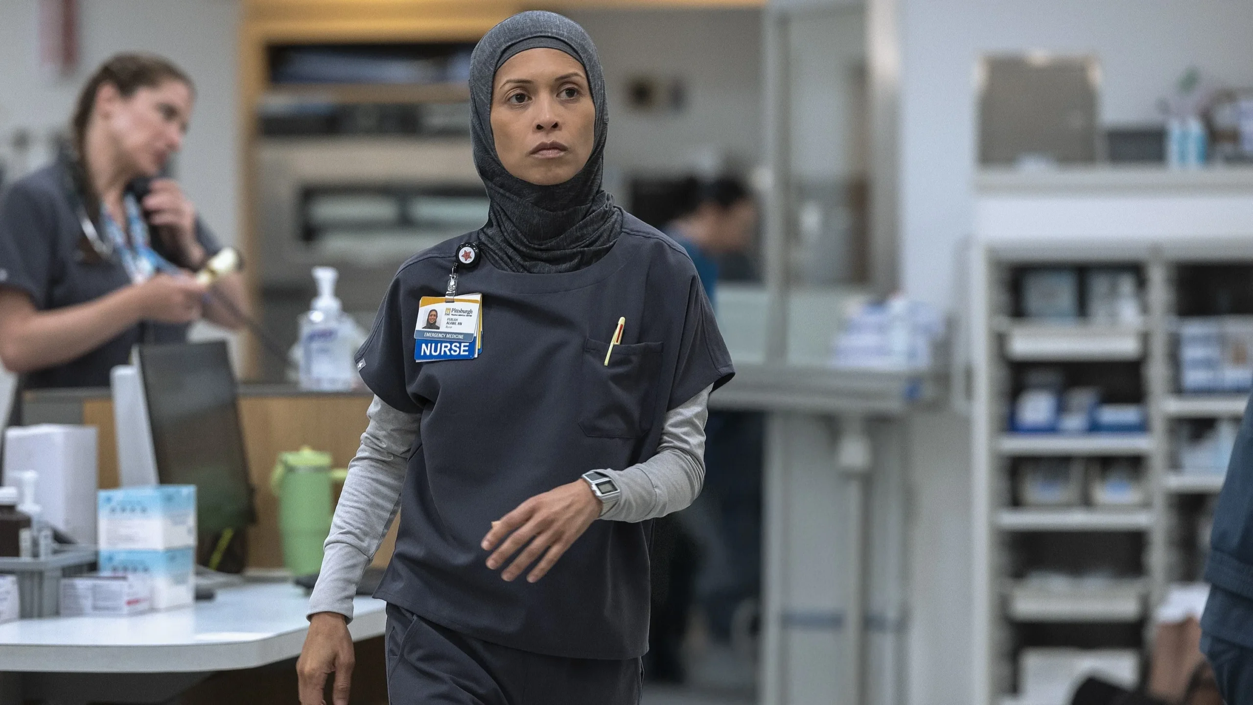 Mesmo com foco nos enfermeiros, Noah Wyle continua a âncora narrativa. Seu Dr. Robby Robinavitch assume postura quase burocrática ao decidir remover o prisioneiro Gus Varney do pronto-socorro. Wyle dosa frieza profissional e empatia mal contida, lembrando momentos memoráveis de dramas médicos clássicos e provando que sua experiência em sitcoms e filmes lhe rendeu um timing dramático preciso.